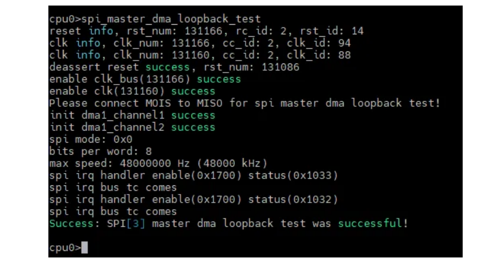 本案例为SPI外回环测试,即将SPI的MOSI和MISO两个引脚短接进行数据收发。
