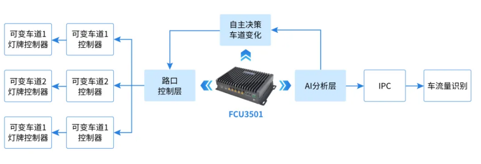 通过FCU3501 AI边缘计算盒子这样的边缘智能核心部署,智能可变车道的控制逻辑实现了根本性转变: