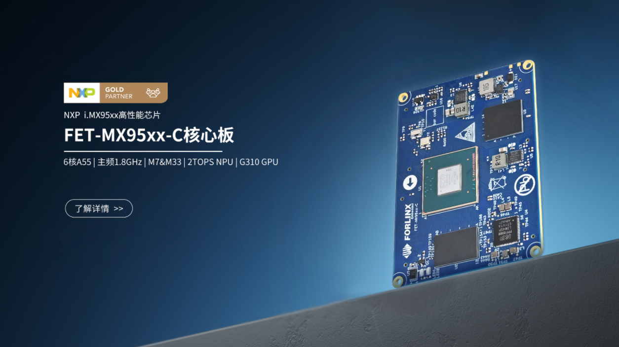 飞凌嵌入式推出基于NXP i.MX95的FET-MX95xx-C核心板,集成高性能核与实时、安全核,具备2TOPS算力NPU,支持4K编解码和图形加速,适用于边缘计算、汽车、工业物联网等领域。i.MX95核心板原生支持多种接口,开发板采用分体式设计,方便用户二次开发。飞凌作为NXP金牌伙伴,提供高性能、工业级嵌入式解决方案,助您产品快速上市,领先行业。选择i.MX95核心板,选择飞凌。