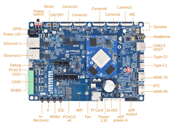 RK3588还引入了新一代完全基于硬件的最大4800万像素ISP(图像信号处理器),实现了许多算法加速器,如HDR、3A、LSC、3DNR、2DNR、锐化、dehaze、鱼眼校正、伽马校正等,在图形后期处理方面拥有广泛应用。RK3588集成了瑞芯微新一代NPU处理器,可支持 INT4/INT8/INT16/FP16 混合算,其强大的兼容性,可以轻松转换基于TensorFlow / MXNet/PyTorch/Caffe 等一系列框架的网络模型。RK3588具有高性能的 4 通道外部存储器接口(LPDDR4/LPDDR4X/LPDDR5),能够支持苛刻的存储器带宽。